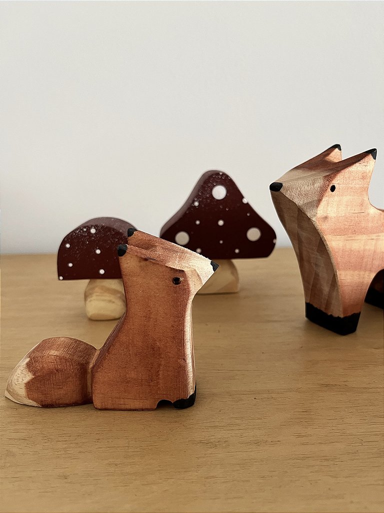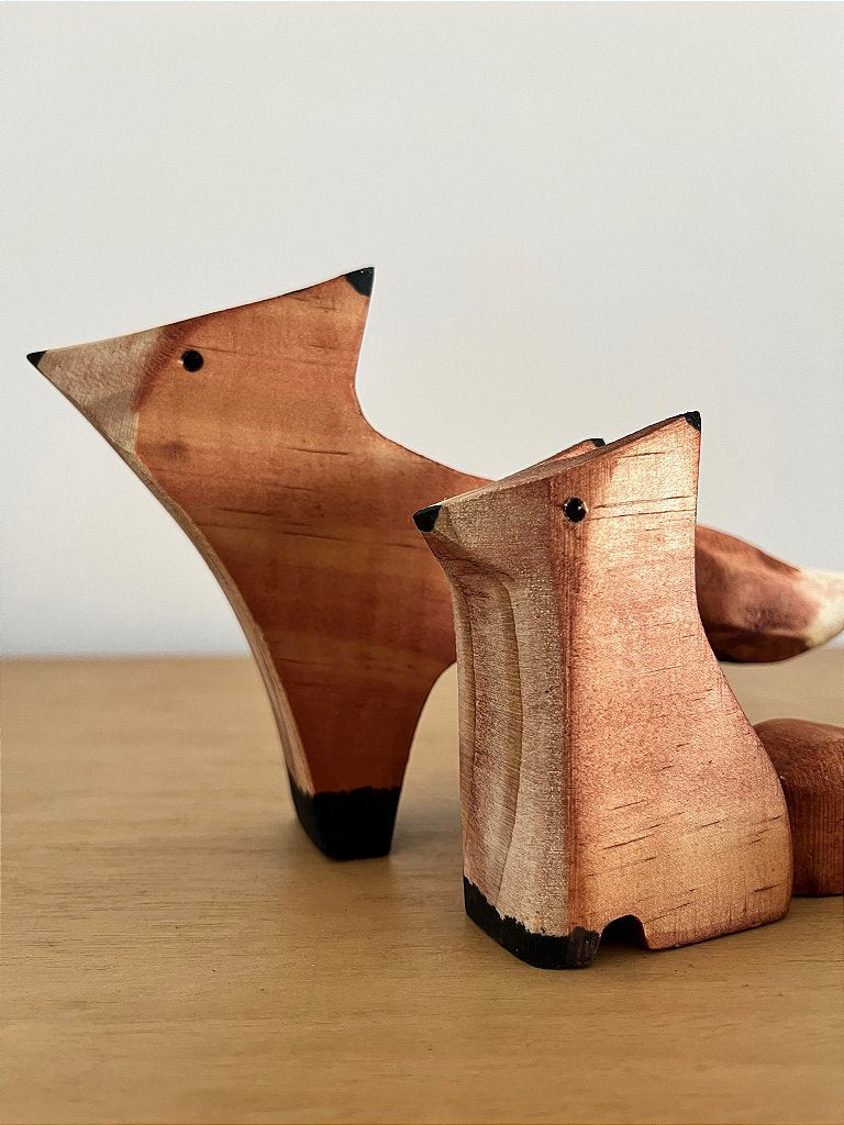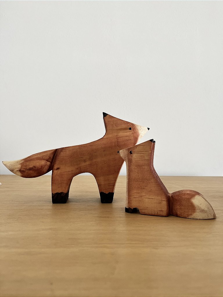 Adorno Dupla Raposinha em Madeira Pinus – Decoração Infantil Artesanal