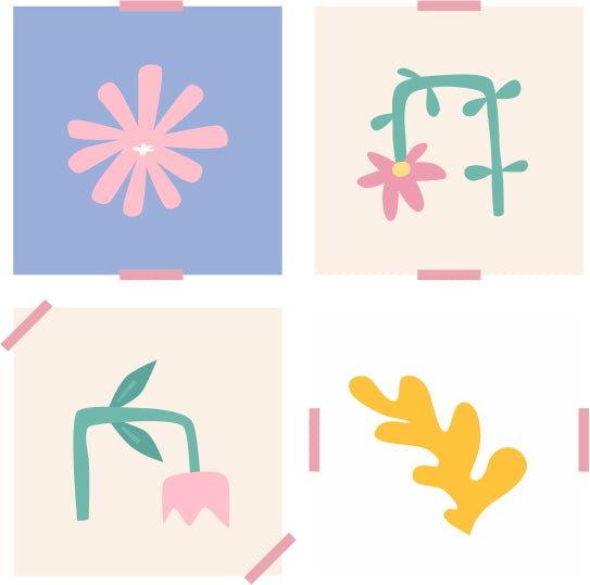 • Kit com 4 quadros decorativos com ilustrações florais exclusivas