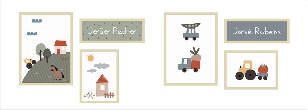 Transforme o quarto dos pequenos em um ambiente divertido, acolhedor e cheio de estilo com o Kit Quadros Irmãos Fazendinha. Com ilustrações exclusivas e personalização com o nome da criança, este kit traz um toque lúdico e único à decoração infantil.