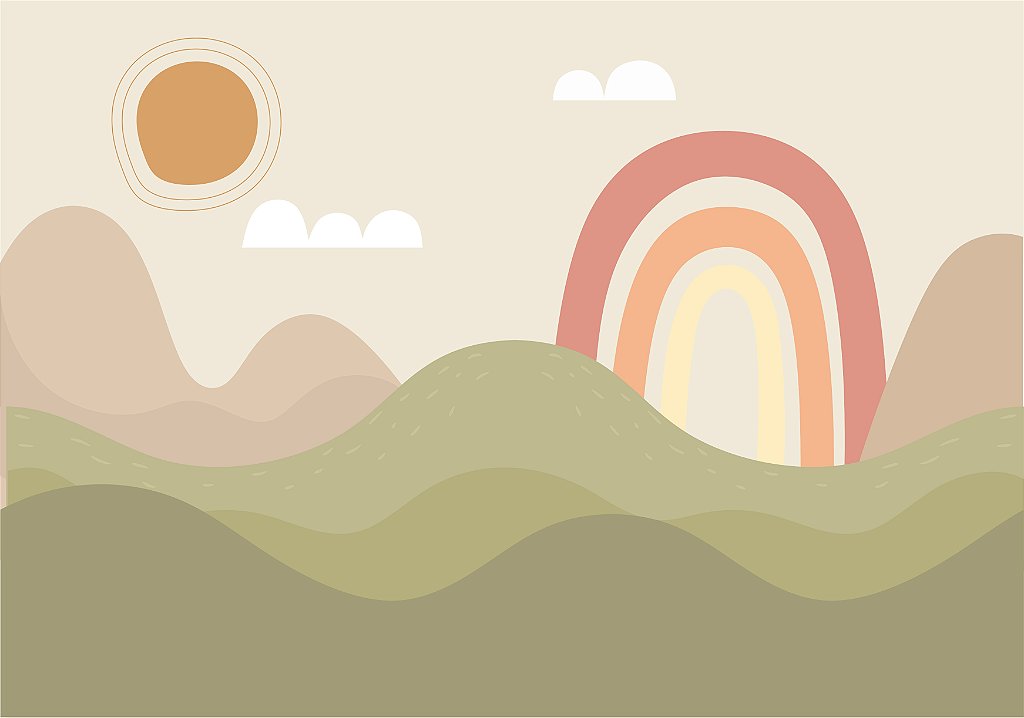 Painel Papel de Parede Campo do Arco-Íris – Decoração Lúdica e Criativa para Quartos Infantis