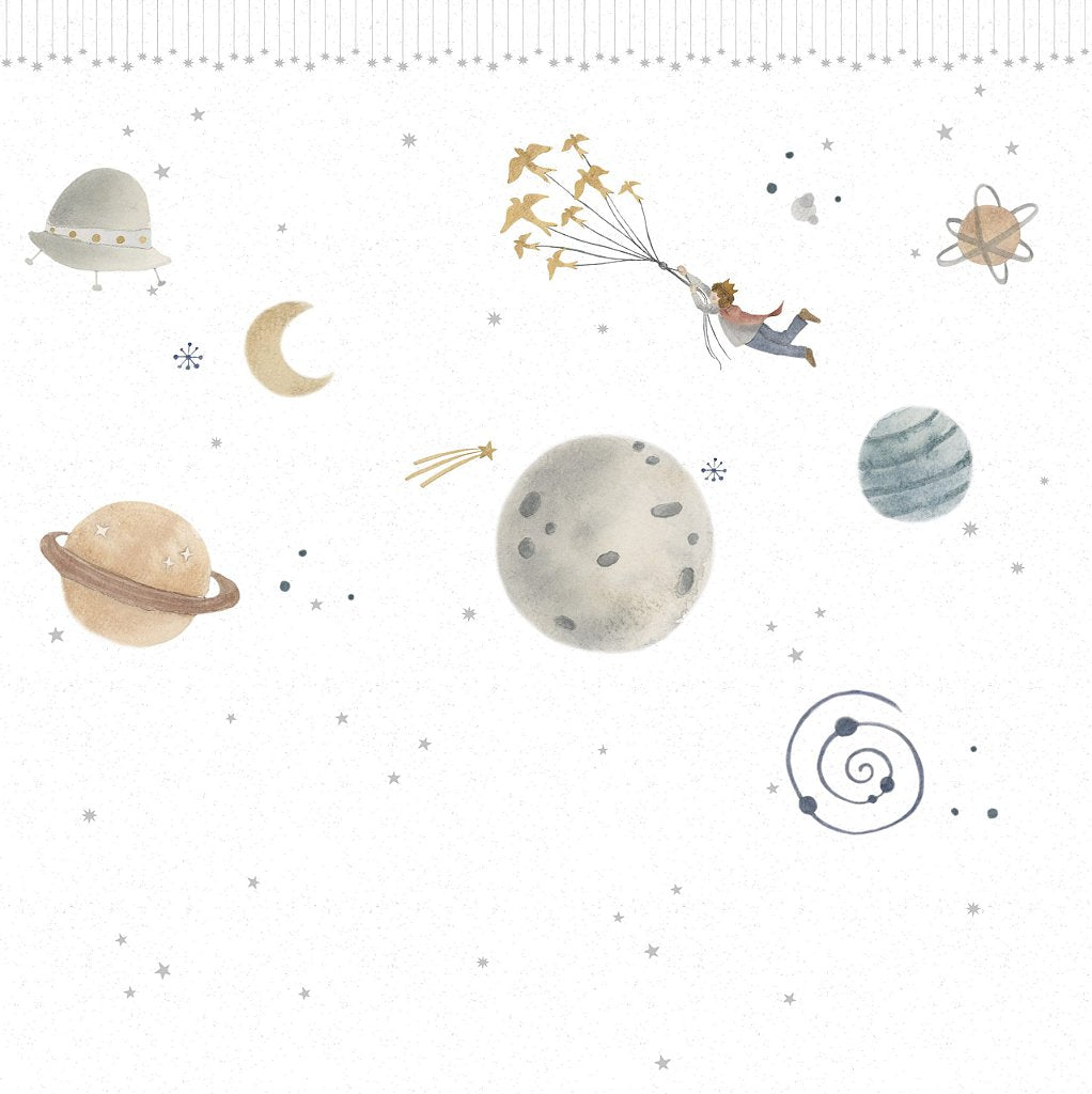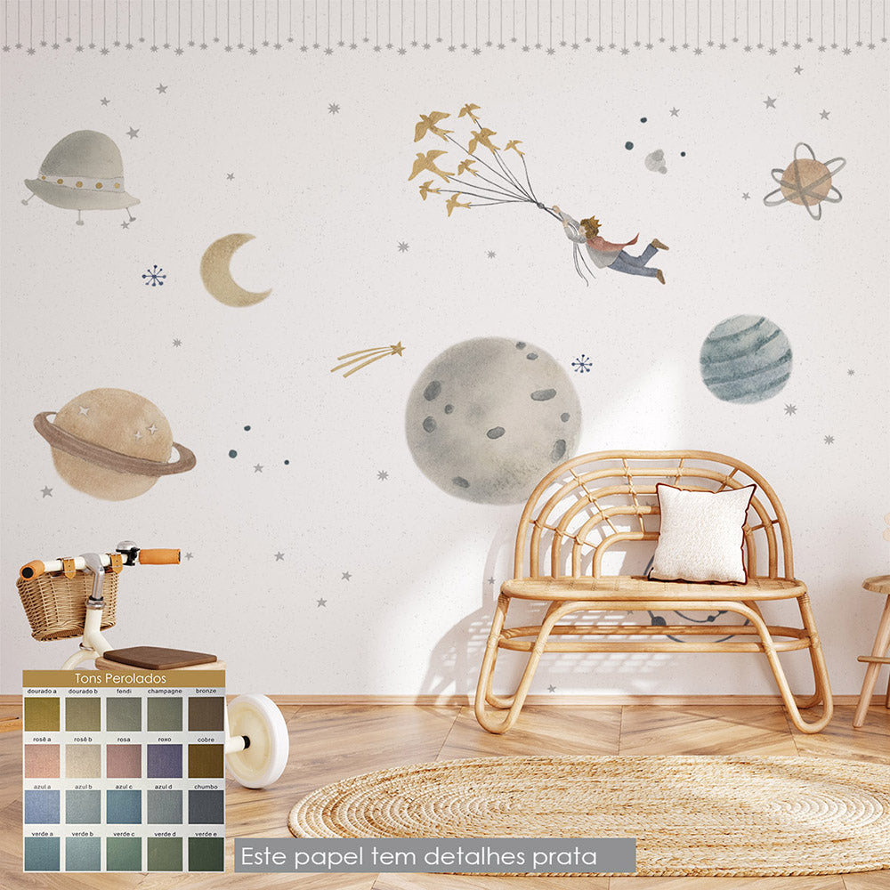 O Painel Pequeno Príncipe Branco e Prata é a escolha perfeita para criar um quarto delicado, moderno e cheio de significado — onde cada detalhe transmite ternura e imaginação.