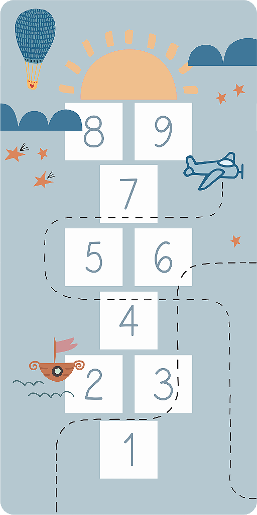 O Tapete Playmat Amarelinha Amo Viajar é produzido em PVC vinílico, antiderrapante e anti-chamas, oferecendo segurança, praticidade e muita diversão. Além de decorar o ambiente, ele estimula novas brincadeiras e interação para as crianças.