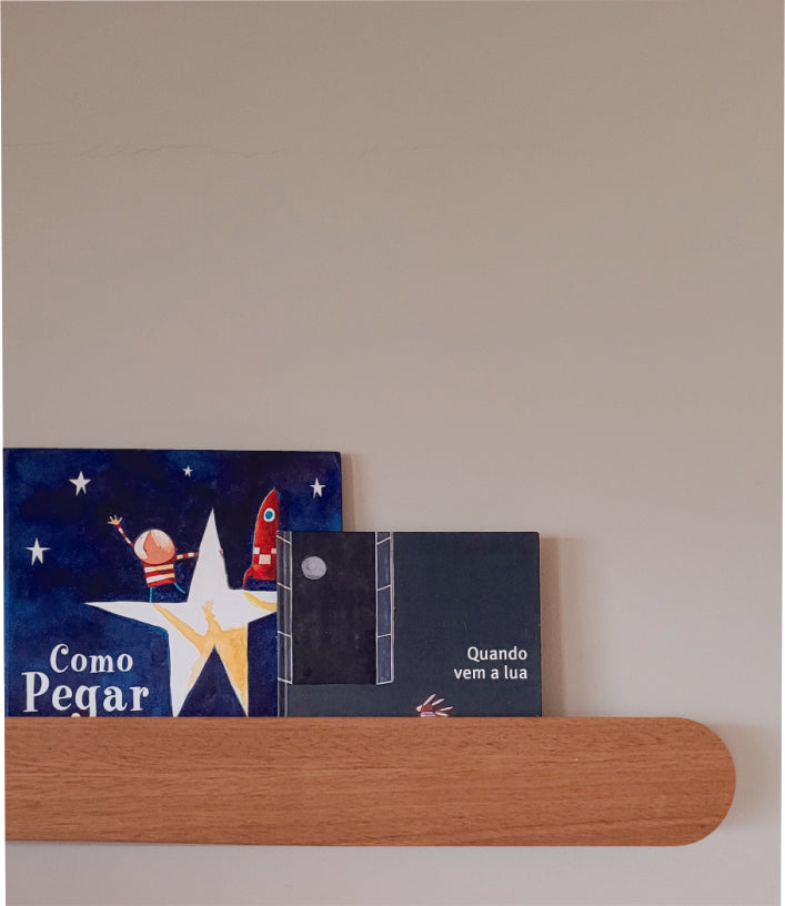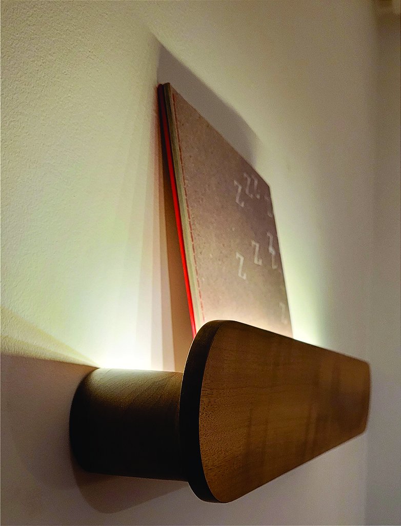 A Prateleira com luminária Holt recebe curadoria especial na seleção da madeira, podendo apresentar pequenas variações de tonalidade, tornando cada peça única.