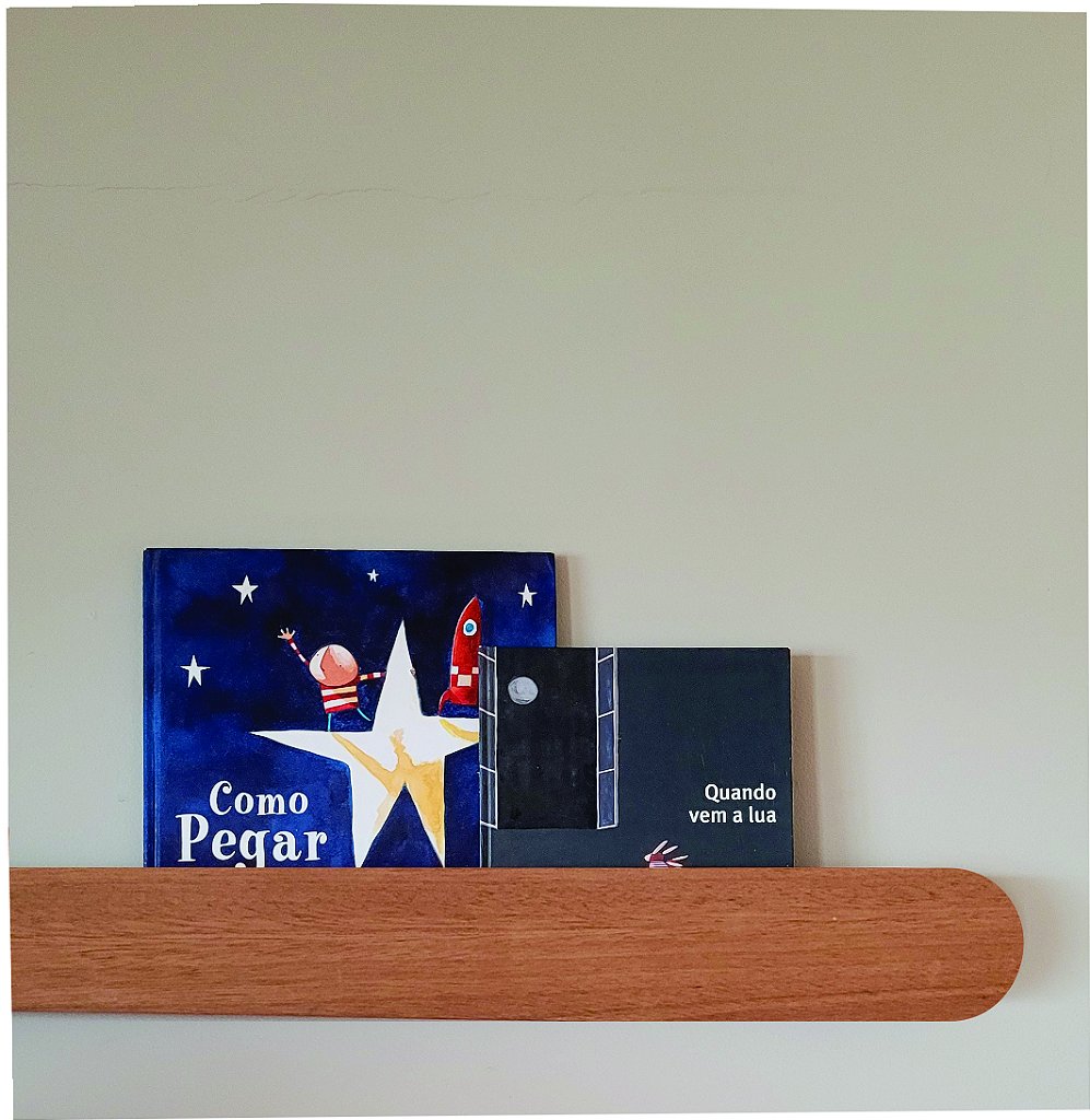 Cada suporte de livros passa por uma curadoria na seleção das madeiras maciças, podendo apresentar pequenas variações de tonalidade, tornando cada peça única.