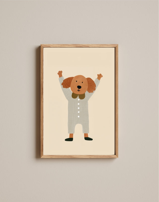 Desenvolvido com arte exclusiva do nosso ateliê, o Quadro Infantil Aquarelado Cão Feliz é perfeito para quem busca uma decoração infantil original, encantadora e cheia de personalidade.