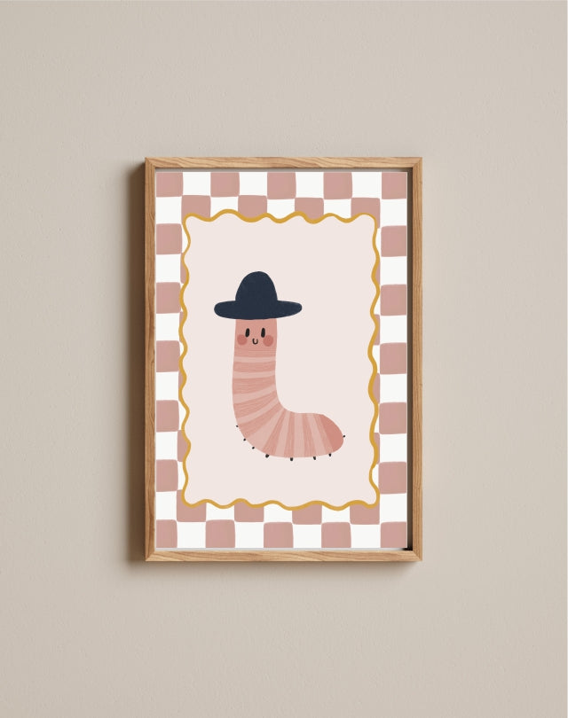 Quadro Infantil Aquarelado Minhoca – Diversão e Cores para o Quartinho dos Pequenos