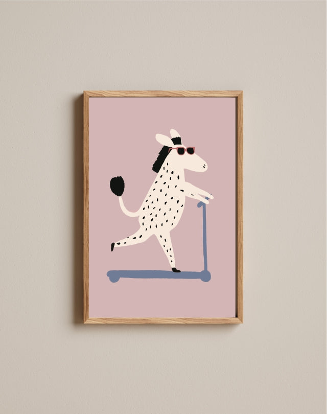 Produzido em papel couchê de alta gramatura, o Quadro Aquarelado Zebra Skatista oferece impressão de alta qualidade, cores vivas e acabamento premium. Disponível com ou sem moldura em madeira e vidro transparente, é uma peça versátil que adiciona charme e movimento ao quartinho dos pequenos.