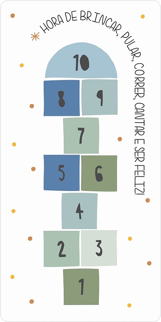 O Tapete Playmat Amarelinha Vamos Brincar transforma qualquer cantinho em um espaço de alegria e movimento. Com um design lúdico e colorido, ele convida as crianças a pularem, contarem e se divertirem, estimulando o desenvolvimento motor e a criatividade.