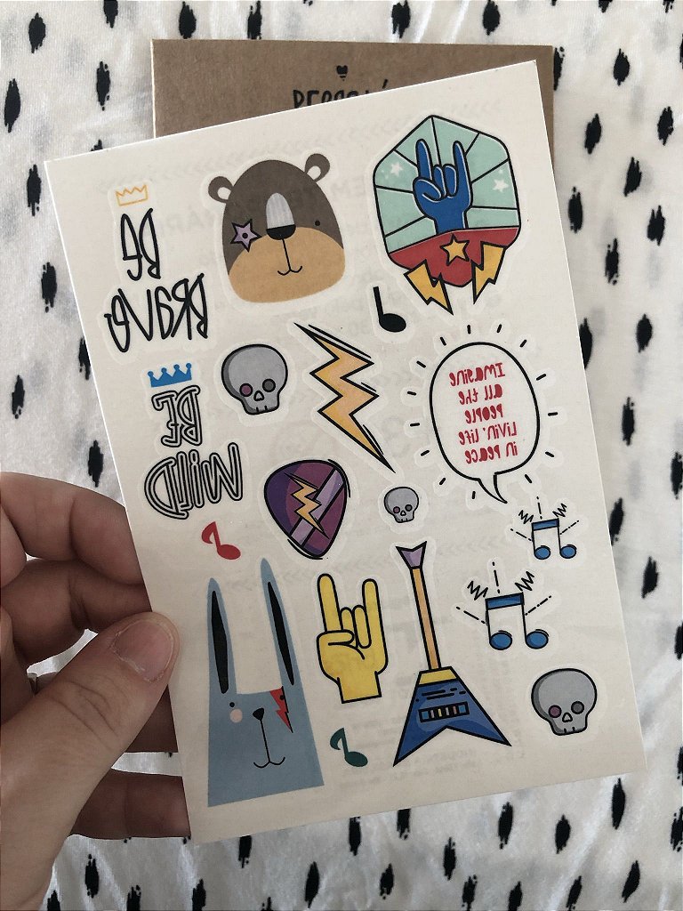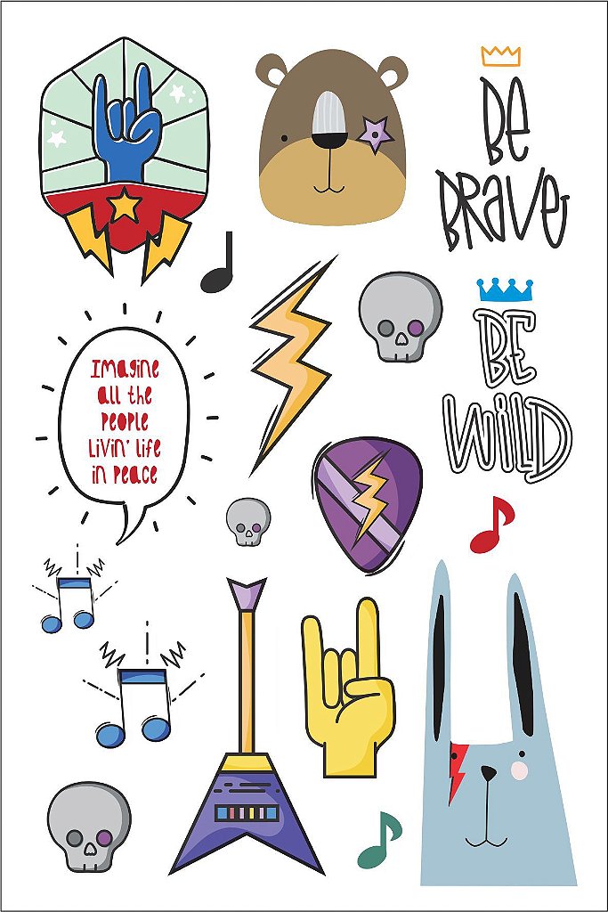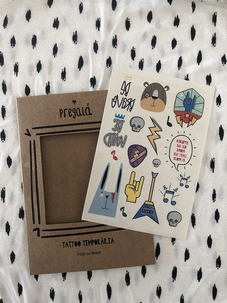 As Tatuagens Temporárias Dia de Rock são ideais para quem ama música, atitude e estilo! Com ilustrações exclusivas inspiradas no universo do rock, elas garantem muita diversão e um visual descolado para crianças e adultos.