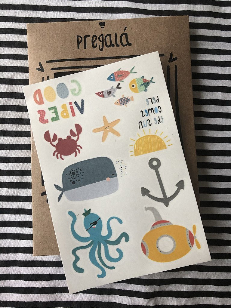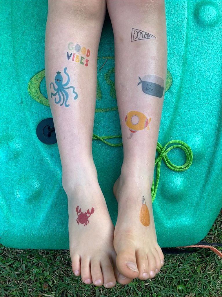 As Tatuagens Temporárias Fundo do Mar trazem toda a magia e as cores do oceano para a pele! Com peixinhos, polvo, estrelas-do-mar e outros personagens marinhos encantadores, elas garantem diversão para pequenos e grandinhos em qualquer ocasião.
